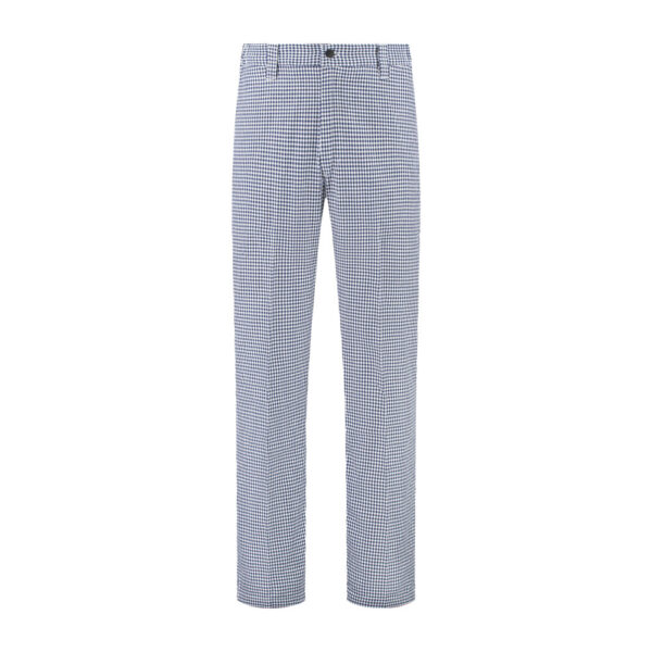 Bakkersbroek luxe, 100% katoen, 200 gram/m2, ritssluiting, elastiek aan de zijkant, 2 steekzakken, 1 achterzak met drukknoop, telfoonzak op dijbeen met drukknoop, lengtezoom