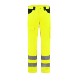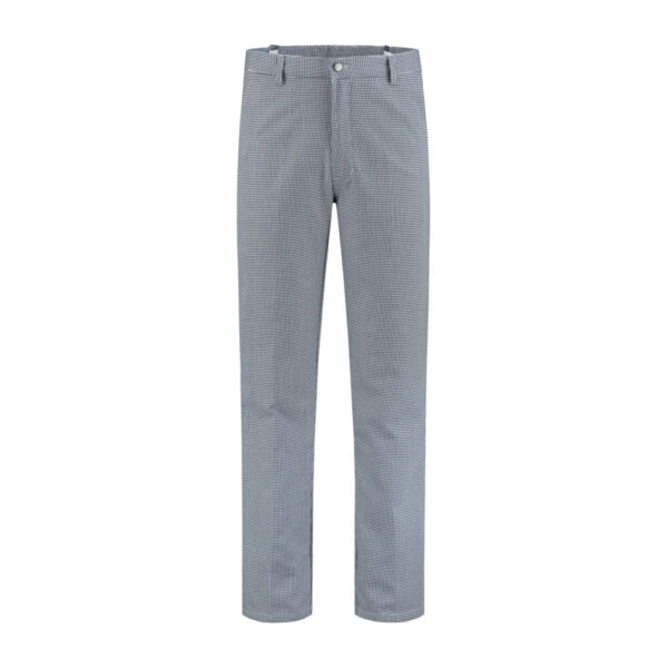 Bakkersbroek 65% polyester / 35% katoen, 200 gr./m2. Knoopsluiting met rits, 2 zijzakken, 1 achterzak, riemlussen, verstelbaar elastiek in de tailleband.
