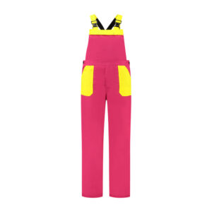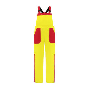 Hoge zichtbaarheidsoverall-Tropenoverall, 100% katoen, 200 grams, drukknoopsluiting, elastiek in de taille, 2 borstzakken met klep, 2 zijzakken, 2 intasten, achterzak, duimstokzak, kniezakken, rugplooien, striping