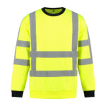 Sweater RWS. 75% polyester, 25% katoen 300 grams doek. Lange mouw met zwarte manchetten, ronde hals met zwarte boord.
