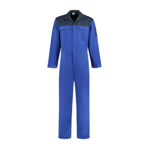 Tuinbroek polyester/katoen, 65% polyester / 35% katoen, 190 gram/m2, 1 grote borstzak met drukknoopsluiting, 2 zijzakken, 2 intasten, achterzak en duimstokzak